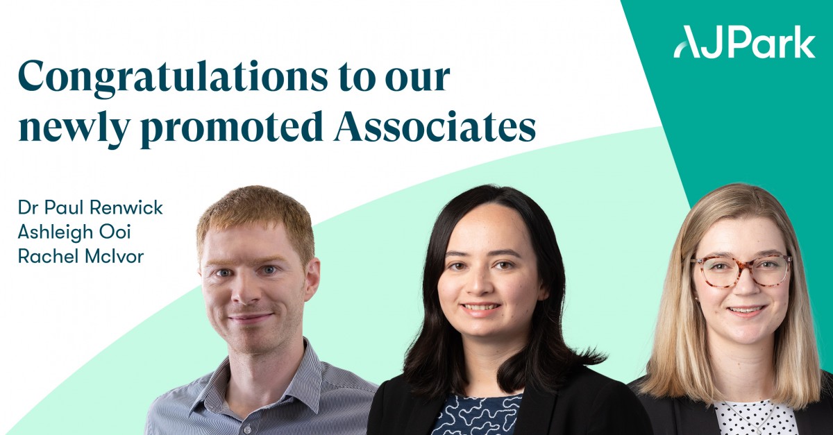 We are delighted to announce the promotion of three members of the AJ Park team to the role of Associate, with effect from 1 January 2022. Please join us in congratulating Ashleigh Ooi, Dr Paul Renwick and Rachel McIvor for their promotions, recognising their development and our appreciation of their contribution to the firm.